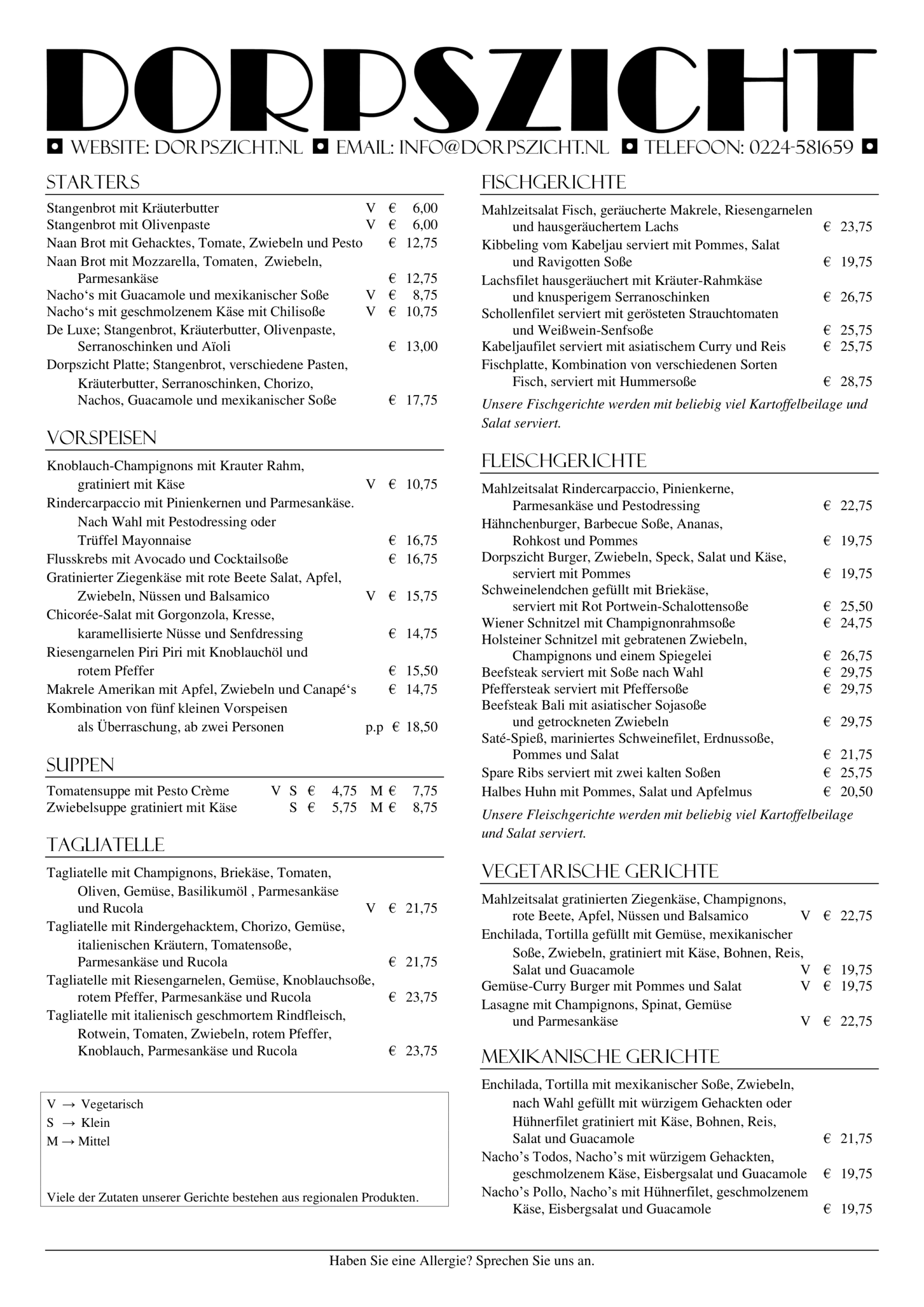 – Abendmenü (Duitse kaart) Sommersaison 2026