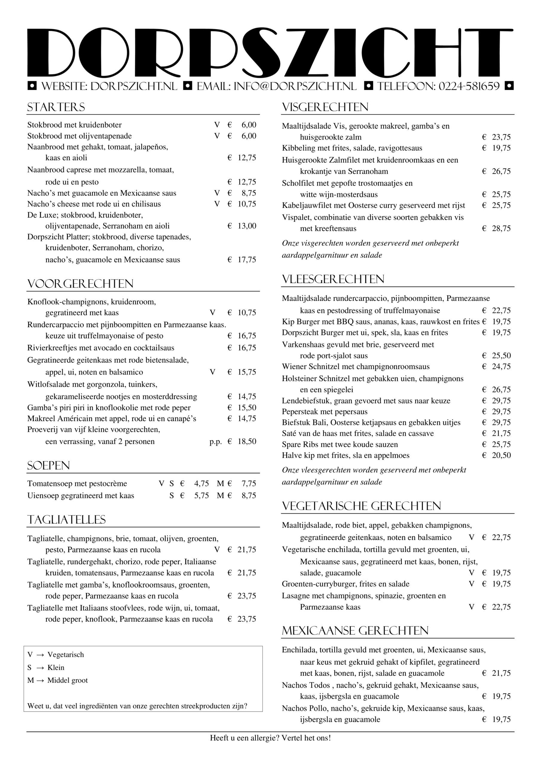 – Dinerkaart zomerseizoen 2026